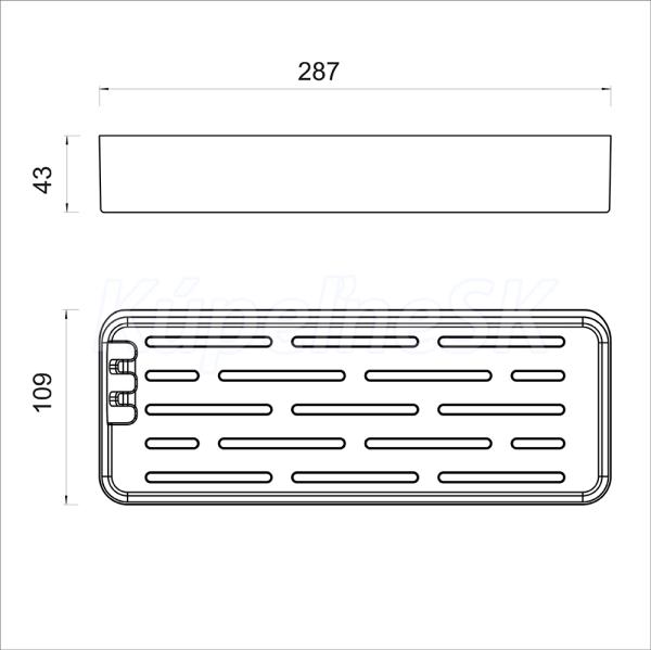 Obdĺžniková polica s hlbším dnom, s háčikmi.