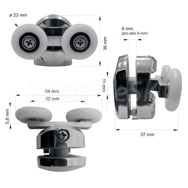 Sady pojazdov – horné, pojazdy pevné pre sprchové dvere a kúty LIMA, CK804xxK a CK608xxK, sada 2ks