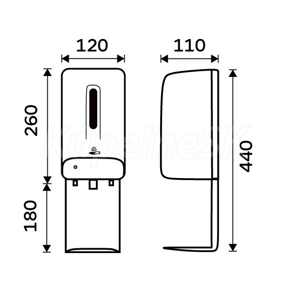 Bezdotykový dávkovač dezinfekčního roztoku 1l s odkapávačem a průzorem je skvělým doplňkem do koupelny. Balení obsahuje 4 šrouby, 4 hmoždinky, klíč k otevírání zásobníku, odkapávač. Výrobek je určený k navrtání i k nalepení. Lepidlo MAMUT ani baterie typu C nejsou součástí výrobku. Lepidlo lze dokoupit pod artiklovým číslem 35003TU. K nalepení bude potřeba 1 tuba lepidla MAMUT. Přístroj je nutné vybavit 4 ks baterií 1,5V typ C. Kvalitní baterie vydrží až 60 tis dávkování. Dobíjecí baterie jsou zakázány! Objem zásobníku 1000 ml. Životnost dávkovací pumpičky 300 tis dávek. Objem 1 dávky dezinfekčního roztoku je 0,004 ml. K dávkovači lze dokoupit pumpu na dezinfekční gel/tekuté mýdlo. Odkapávač zabraňuje nechtěnému znečištění v okolí dávkovače. Senzorový dávkovač není uzpůsoben do sprchového koutu pro přímý kontakt s vodou. V přední části dávkovače je umístěna LED kontrolka, která upozorňuje na nízký stav baterie. Nutné dodržet vzdálenost dávkovače od umyvadla 30 cm! Materiál plast ABS-odolný vůči mechanickému poškození. Plast je tuhý, houževnatý, zdravotně nezávadný.