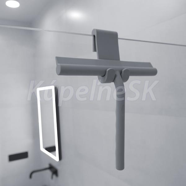 Koupelnová stěrka závěsná do sprchy šedá je skvělým doplňkem do koupelny. Závěsná sprchová stěrka je určena k zavěšení do sprchového koutu. Tloušťka skla max 10 mm. Stěrka je vyrobena z kovu. Celý její povrch je obalen matným silikonem. Výhodou silikonové stěrky je její pružnost. Při neočekávaném pádu neponičí sprchovou vaničku nebo vanu. Součástí stěrky je silikonový hák pro zavěšení.