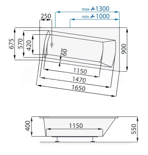 Santech EMO asymetr. masážna vaňa 165x90cm,fitnes 200+aut.dohrev vody+aut.preplach Clean