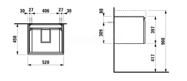 Laufen PRO S skrinka pod umývadlo so zásuvkou+vnútornou zásuvkou 52x45x39 cm,Dub Svetlý