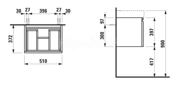 Laufen PRO S skrinka pod umývadlo so zásuvkou+vnútornou zásuvkou 51x37x39 cm,Biela Lesklá