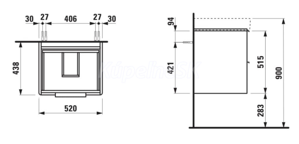 Laufen BASE skrinka pod umývadlo 52x53,1x43,8 cm,2 zásuvky,Biela Matná