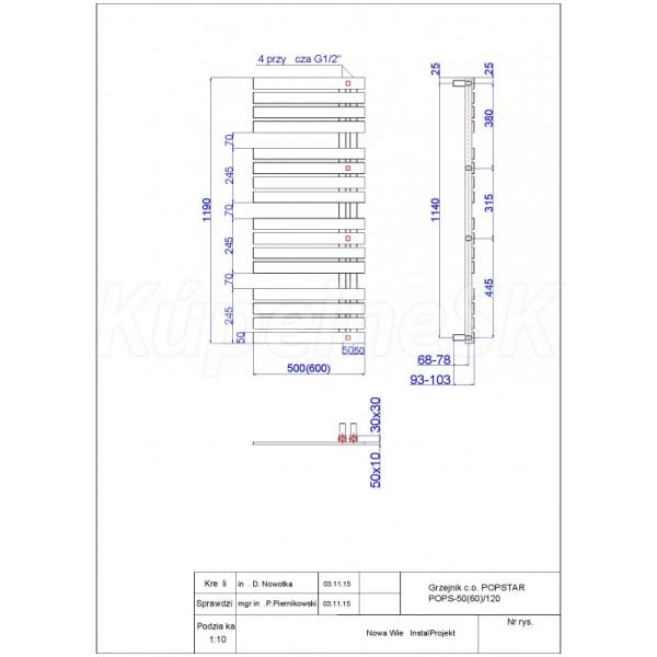 Instalprojekt POP STAR Kúpeľňový radiátor 500x1190mm, 440 W, Spodné pripojenie, Biela Lesk