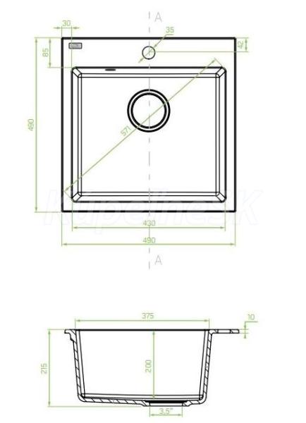 Laveo ALENA/ALVO 20 kuch.granit.drez 49x49 cm+click clack sifón,odboč.na umýv.riadu,Béžový