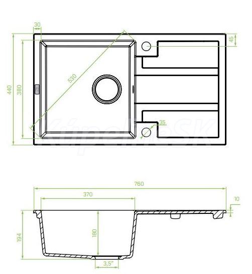Laveo BARBADOS 76/ALVO 70 kuchynský granitový drez 76x44 cm+sifón,odb.na umýv.riadu,Béžový