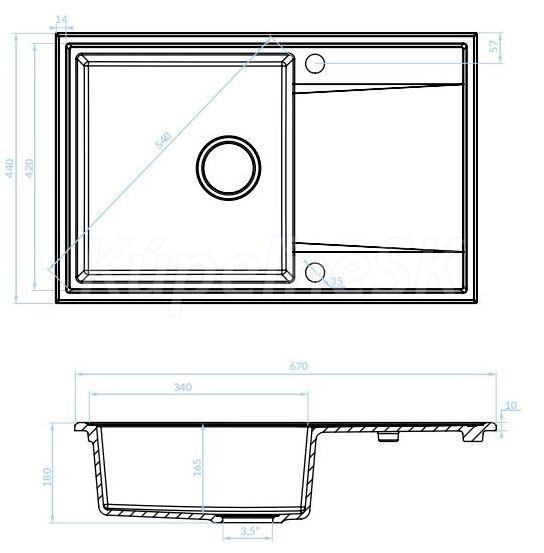 Laveo HUNTER 50 kuchynský granit.drez 67x44 cm+sif,krytka,odboč. na umýv.riadu,Čierny