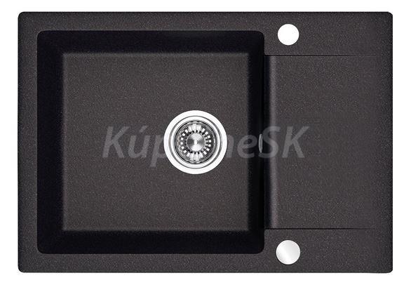 Laveo CELEBES/ALVO 40 kuchynský granit.drez 65x44 cm+sif,krytka,odboč.na umýv.riadu,Čierny