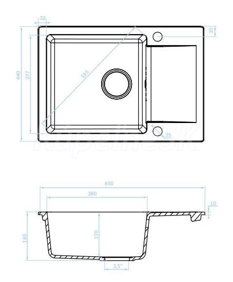 Laveo CELEBES 40 kuchynský granit.drez 65x44 cm+sif,krytka,odboč.na umýv.riadu,Čierny