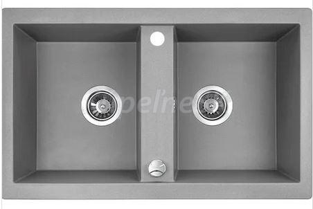 Laveo BARBADOS kuchynský granit DVOJdrez 78x48 cm,sifón,odb.na umýv.riadu,Šedá