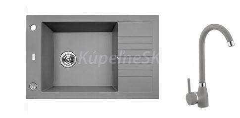 Laveo Set PIONIER kuchynský granitový drez 78x50 cm+batéria Granit Šedá