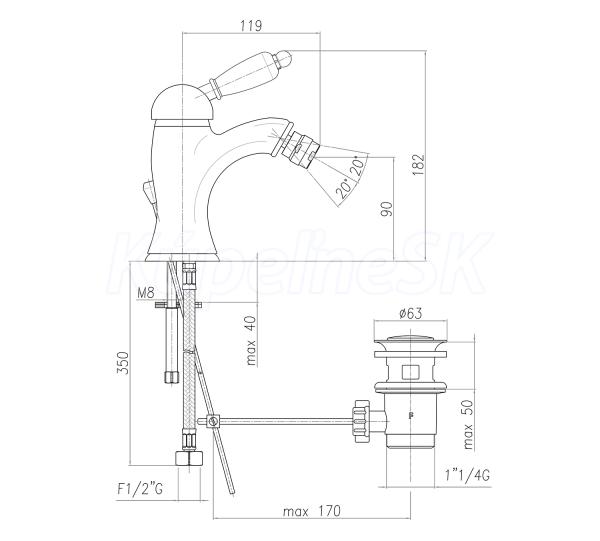 Sapho KIRKÉ BLACK stojánkova bidetová batéria s výpusťou, čierna páčka, chróm