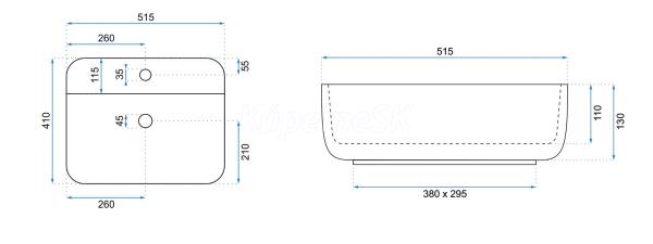 REA MARTINA keramické umývadlo na dosku 51,5x41 cm Biele U6646