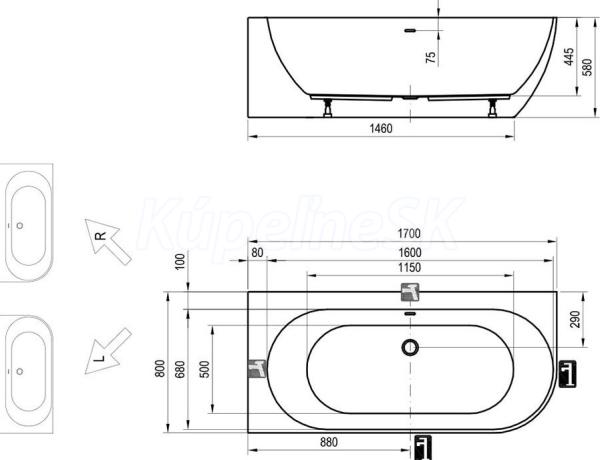 RAVAK Freedom Corner voľne stojaca vaňa 170x80 cm SnehoBiela/Čierna Pravá+sifón