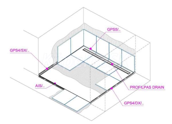 Profil ke sklu GPS5/ z nerez oceli se používá na stěnu vedle odtokového žlabu se spádem. Tímto se vyhnete řezu obkladu na míru. GPS5 doplňuje esteticky okraj sprchového koutu.