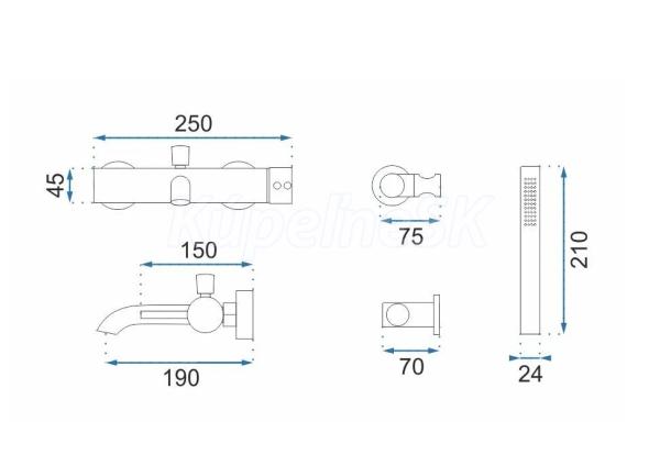 Dovoľte nám predstaviť modernú, neobyčajne funkčnú a štýlovú vaňovú batériu. Táto batéria sa bude perfektne hodiť do Vašej kúpeľne, v ktorej súčasne zachová bezúhonný vzhľad aj estetiku interiéru. Batéria je určená na montáž na stenu a jej korpus je vyrobený z kvalitnej mosadze, pokrytej trojitým povlakom, a špeciálna fáza, ktorá bola použitá pri výrobe tejto batérie, zaisťuje ľahké čistenie a vysokú odolnosť.