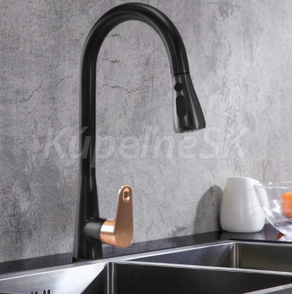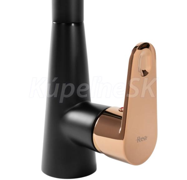 REA MILD kuchynská/drezová batéria s vyťahovacím výtokom a s prepínačom Čierna matná/ružové Zlato B4801