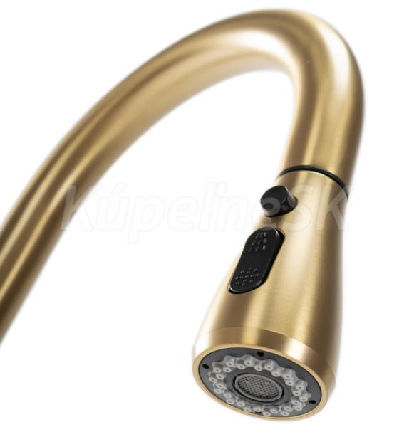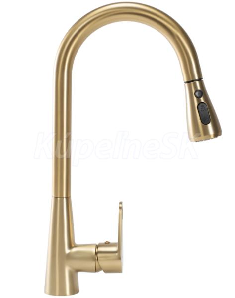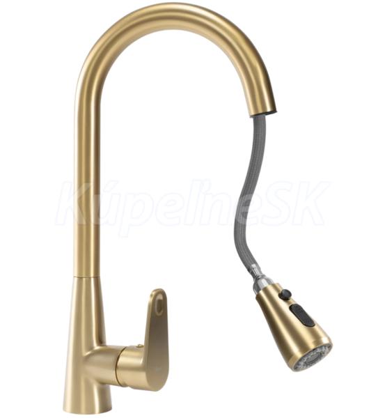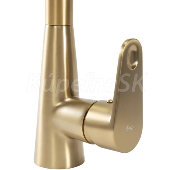 REA MILD kuchynsk/drezová batéria s vyťahovacím výtokom a s prepínačom brúsené Zlato B4803