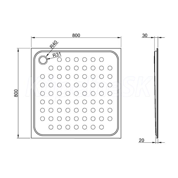 NOFER Sprchová vanička 800x30x800 mm, nerez mat