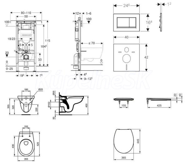 Geberit Set Jadrofix (Duofix Special) 111.355.00.5+závesné WC Quarzo/Alpha+sedátko SoftClose+tlačidlo Sigma30 Biela/Chróm