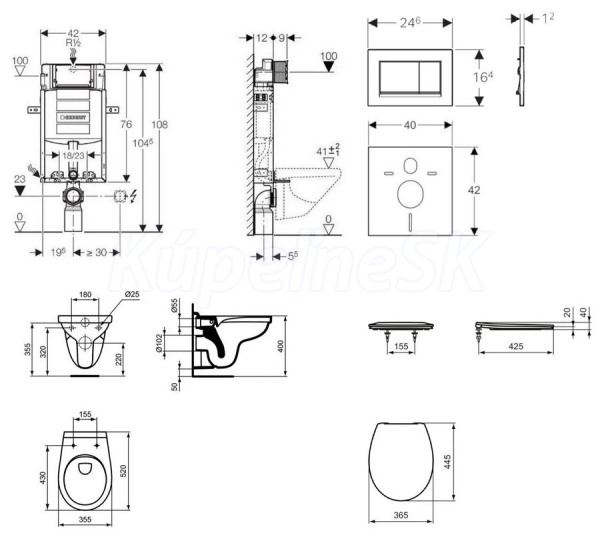 Montážny prvok Kombifix na závesné WC so splachovacou nádržkou pod omietku Sigma 12 cm
