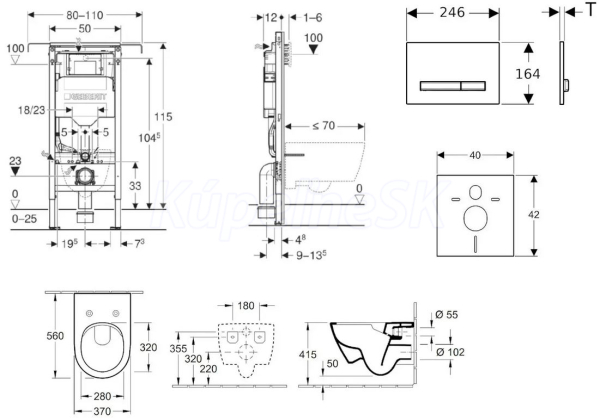 - predstenový inštalačný modul Geberit Duofix (111.355.00.5), sa splachovacou nádržkou pod omietku Sigma 12 cm