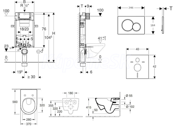 - predstenový inštalačný modul Geberit Kombifix (110.302.00.5), sa splachovacou nádržkou pod omietku Sigma 12 cm