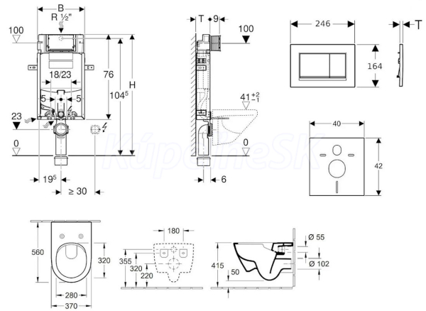 - predstenový inštalačný modul Geberit Kombifix (110.302.00.5), sa splachovacou nádržkou pod omietku Sigma 12 cm