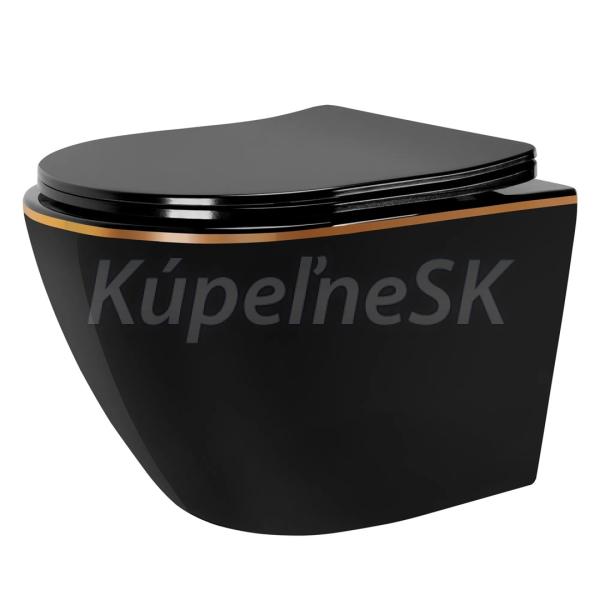 Rea CARLO mini závesná WC misa 49x37 Rimless,sedátko SoftClose,Čierna lesklá/zlatý okraj