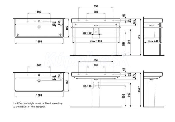>>  Umývadlá  >>  Dvojumývadlá  >>  Laufen Pro S dvojumývadlo do nábytku 120x46,5cm,3otvory pre bat,s prepadom,Biela LCC Activ