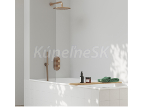 Termostatická podomietková 3-cestná batéria Espirit, určená pre R-box. Vo vyhotovení Rose Gold Brushed. kartuša (materiál): termostatická vyhotovenie: 3-cestná, s prepínačom, určená pre R-box Termo RB 07C.50 farebné vyhotovenie: RGB: Rose Gold Brushed - ružové zlato kefované vhodná: k vaniam s vaňovou zástenou pre napúšťanie prepadom alebo výtokovým ramenom a vývodom pre hlavovú a ručnú sprchu pre sprchové kúty, ktoré majú pevnú hlavovú a ručnú sprchu na napr. masážne trysky doplnky na dokúpenie: R-box Termo RB 07C.50, sprchový set a ďalšie príslušenstvo rovnakého farebného prevedenia Termostatická podomietková batéria je pripravená pre použitie inštalačného telesa R-box, ktoré významne uľahčuje prácu a zlepšuje výsledok celého diela. Pre ucelené riešenie a dizajnový súlad kúpeľne odporúčame kombinovať s ostatnými batériami Espirit rovnakého farebného prevedenia. Na vonkajšie čistenie odporúčame používať čistiaci prípravok Ravak Cleaner Chrome. Základné teleso pre podomietkovú batériu RB 07C.50 nie je súčasťou batérie a je nutné ho dokúpiť. R-box obsahuje materiál pre prichytenie k stene, nezahŕňa prípojky pre vedenie vody ani iný vodoinštalačný materiál. R-box obsahuje pracovný plastový krycí diel vnútorného telesa batérie uloženého v R-boxe, ktorý aj pri demontáži vrchného dielu batérie zachováva rozvod vody v kúpeľni plne funkčný. Prostredníctvom tohto plastového dielu možno rozvod vody odvzdušniť, bez odstávky vody. Odporúčame pretočenie ovládača teploty do maximálnych polôh čas od času (v závislosti na tvrdosti vody), aby nedochádzalo k usadzovaniu vodného kameňa.