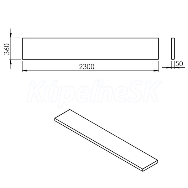 ZnačkaSAPHO SériaDOSKY AVICE Rozmer230x5x36 cm Šírka2300. mm Výška50. mm Hĺbka360. mm Far