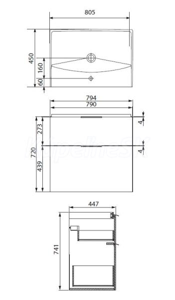 Rozmery: 805 x 450 x 775 mm (šxhxv)