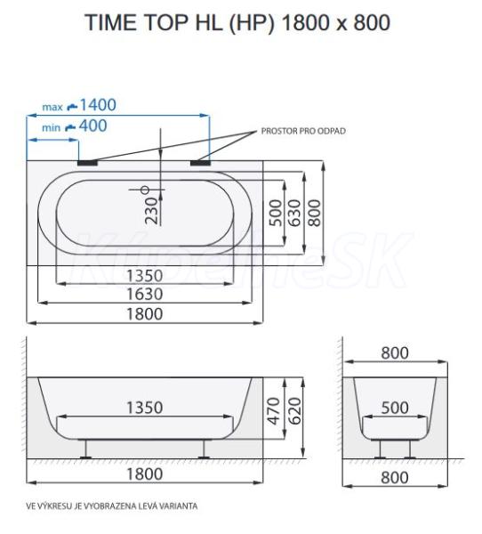 Santech TIME TOP-HL 180x80 voľne stojaca akrylát vaňa hranaté rohy+pozink.rám, Ľavá