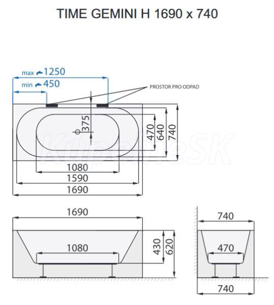 Voľne stojaca vaňa TIME GEMINI - H sa vyznačuje geometrickým hranatým vonkajším tvarom a je vhodná pre umiestnenie k stene. Praktické rozmery umožňujú inštaláciu aj do menších kúpeľní.