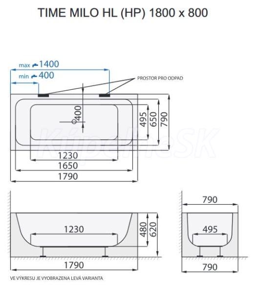 Voľne stojaca vaňa TIME MILO - HL (HP) sa vyznačuje geometrickým hranatým vonkajším tvarom a je vhodná pre umiestnenie iba do rohu. Plynulý priebeh línií s mäkko zakriveným vnútorným priestorom vytvára prirodzený kúpacie priestor bez zbytočného plytvania vodou. Pri navrhovaní kúpeľne nie ste nijako obmedzení, máte na výber z troch rozmerových variantov.