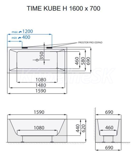 Santech TIME KUBE-H 160x70 voľne stojaca akrylát vaňa hranaté rohy +pozink.rám