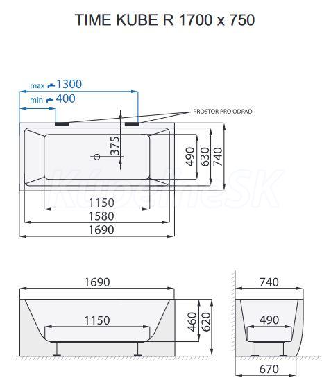 Santech TIME KUBE-R 170x75 voľne stojaca akrylát vaňa zaoblený pred.pan+pozink.rám