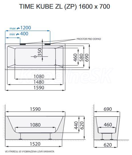 Santech TIME KUBE-ZP 160x70 voľne stojaca akryl vaňa 2x zošik.boky+pozink.rám, Pravá