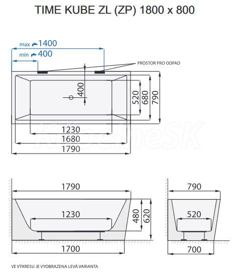 Santech TIME KUBE-ZP 180x80 voľne stojaca akryl vaňa 2x zošik.boky+pozink.rám, Pravá