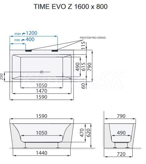 Santech TIME EVO-Z 160x80 voľne stojaca akrylát vaňa 3x zošikmené boky+pozink.rám