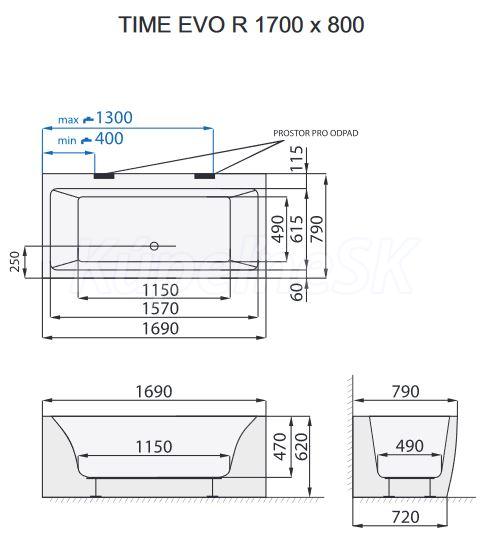 Santech TIME EVO-R 170x80 voľne stojaca akrylát vaňa zaoblený pred.pan+pozink.rám