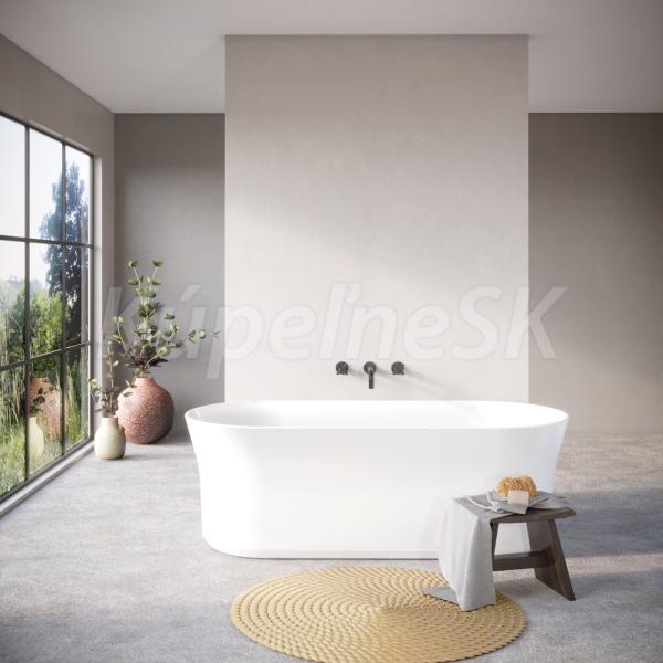 Vaňu nemožno doplniť vaňovou zástenou. Vaňový odtokový komplet (t.j. prepad, pileta, sifón, zápachová uzávera) a podpora (nožičky) sú súčasťou balenia. K vani ponúkame aj voľne stojacu batériu zabudovateľnú do podlahy. Všetky rozvody musia byť vedené v podlahe (ako odpadový, tak prívody vody pre podlahovú batériu). Krytka odtoku s funkciou ClickClack je dodávaná v bielej farbe. Balenie 3v1 navyše obsahuje aj čiernu a chrómovú variantu pre ľahkú výmenu podľa vašich preferencií.