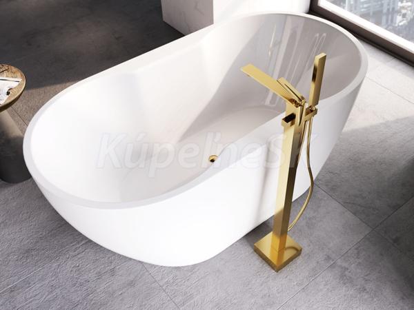 Besco NAVIA voľne stojaca akrylátová vaňa 150x80 cm,210L,Biela,sifón click-clack Zlatý
