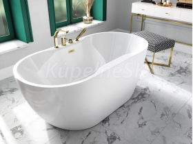 Besco NAVIA voľne stojaca akrylátová vaňa 150x80 cm,210L,Biela,sifón click-clack Čierny