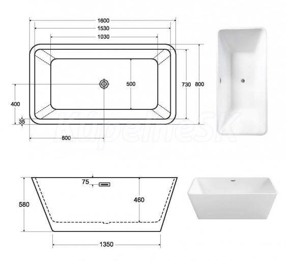 Rozmer voľne stojacej vane: