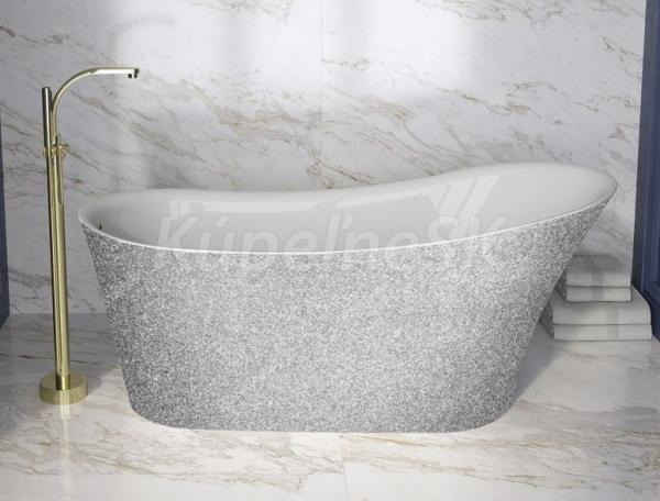 Besco CALIMA Glam voľne stojaca akrylátová vaňa 170x74 cm,Striebro,sifón click-clack Zlatý