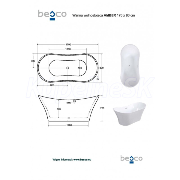 Besco AMBER Glam voľne stojaca akrylátová vaňa 170x80 cm,Zlatá,sifón click-clack Čierny