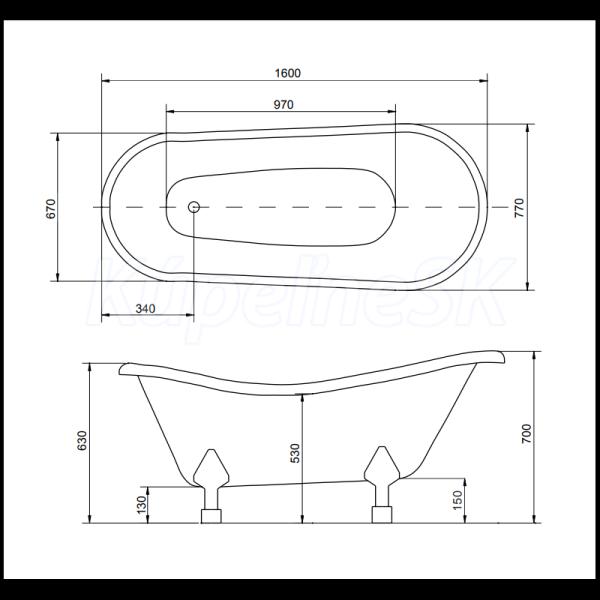 Rozmery voľne stojacej vane OTYLIA GLAM: